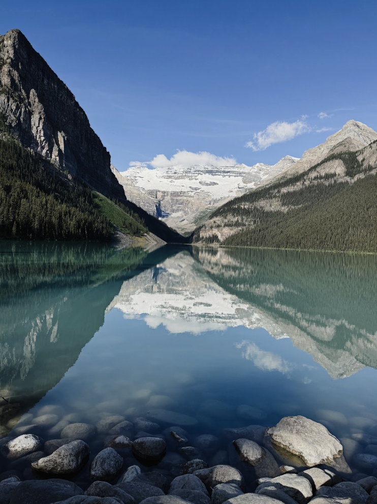 Lake Louise in the morning is something spiritual. The calm water, the mountain reflections… Honestly, it looked fake. Mother Nature really said, “Let me flex real quick.”