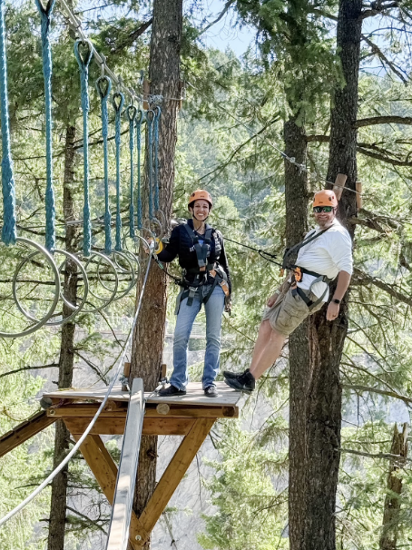 Zipline: 1,000 feet long, 500 feet in the air. Gorgeous, breezy, slightly painful on the leg straps.