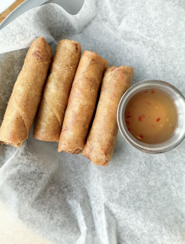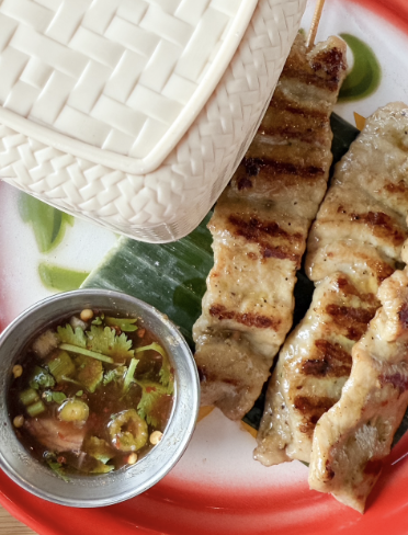 Dinner at Yim Siam Thai Street Food—spring rolls and sticky rice BBQ pork = stars of the show.