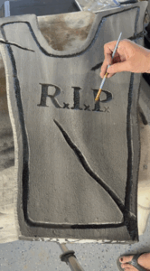 Go over the headstone with a heat gun to give it that aged, “I’ve been dead for 200+ years” texture.